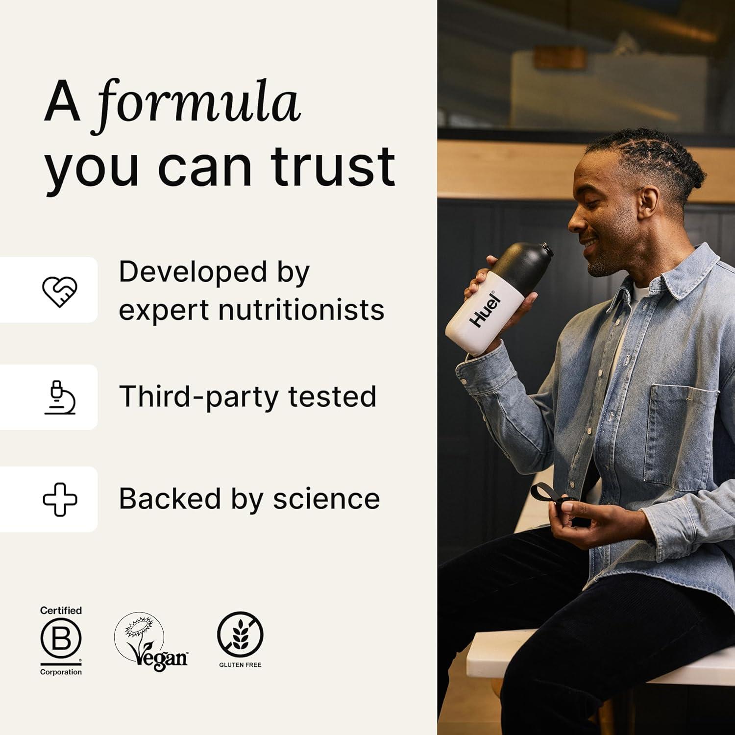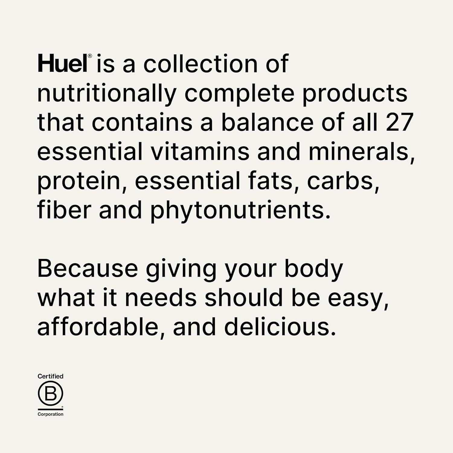 HUEL: (Human + Fuel) was started in 2015 with a mission. To make nutritionally complete, convenient, affordable food, with minimal impact on animals and the environment.