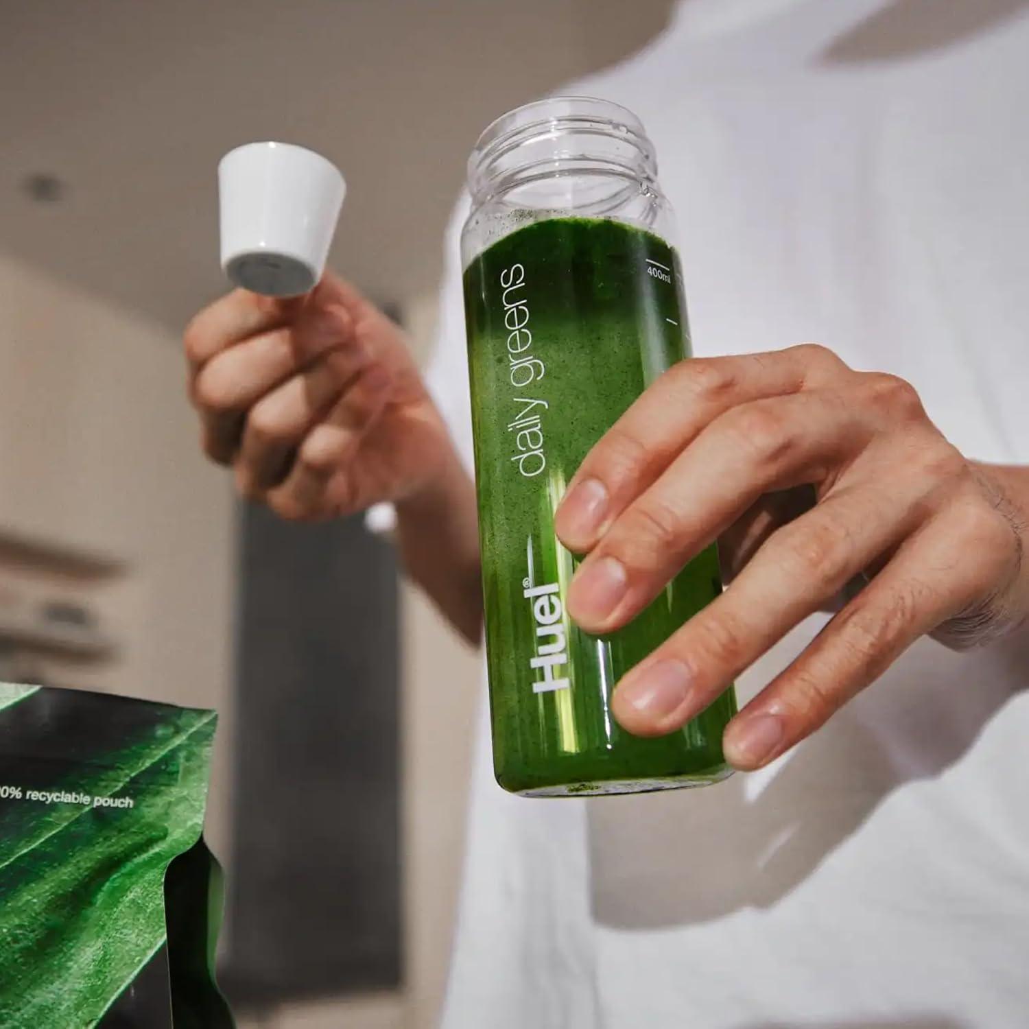 BPA-FREE: Iconic clear bottle design created by Huel to show off your dose of Daily Greens.