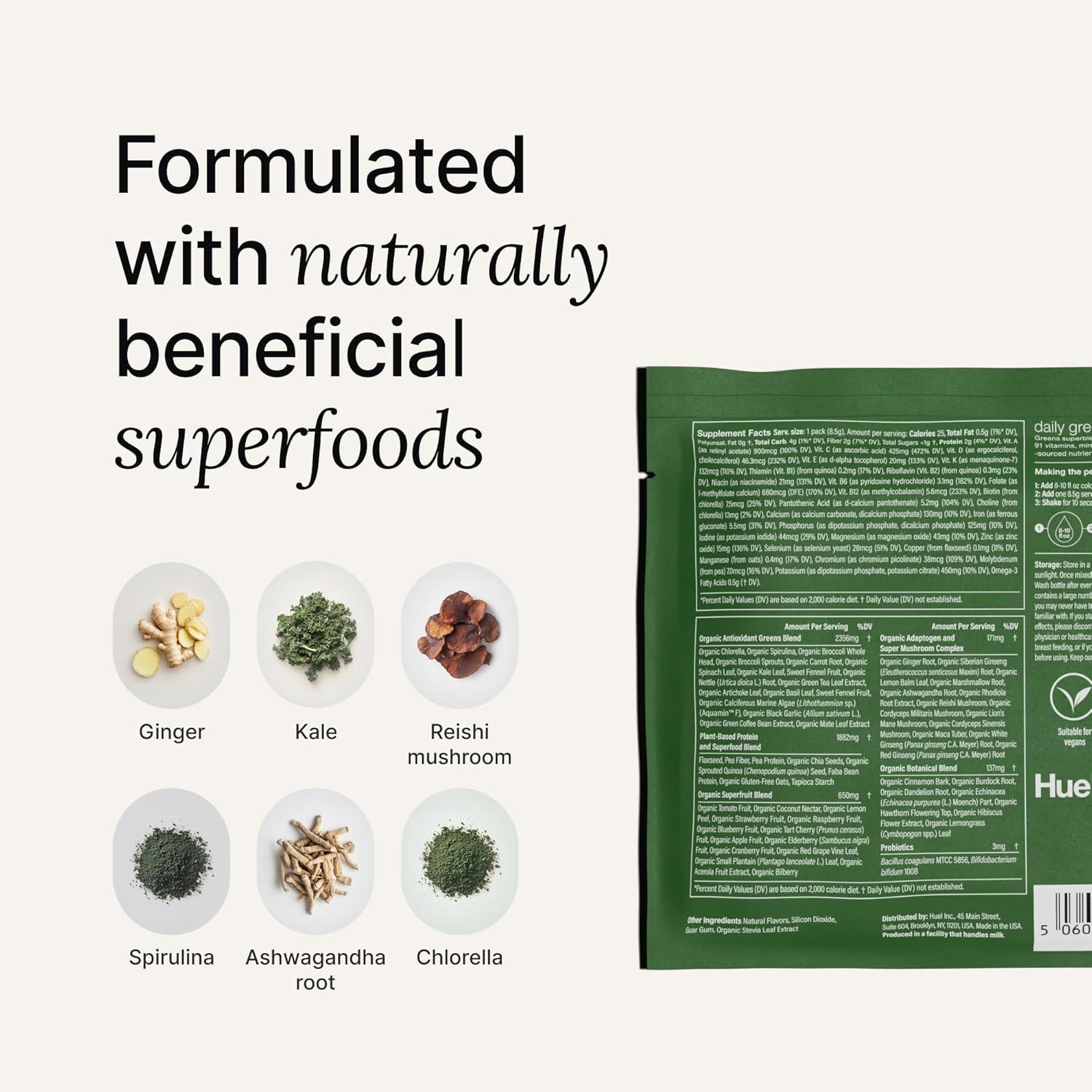 SUPERCHARGE YOUR HEALTH: Huel Daily Greens features a perfect blend of 91 vitamins, minerals and wholefood-sourced ingredients and superfoods that help cover your nutritional needs for the day