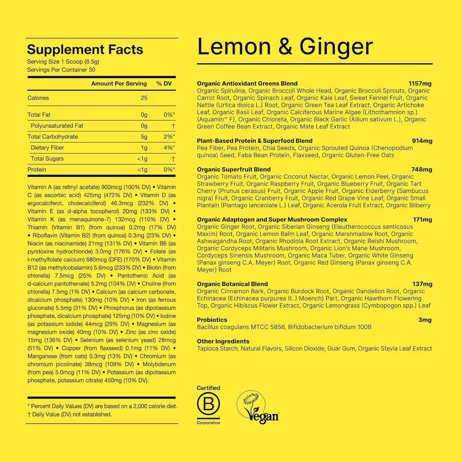 Huel Daily Greens Peach Passionfruit | Superfood Greens Powder | 91 Vitamins, Minerals, and Wholefood-Sourced Ingredients | Adaptogens, Antioxidants, Gut-Friendly Probiotics | 30 Servings(Lemon & Ginger)