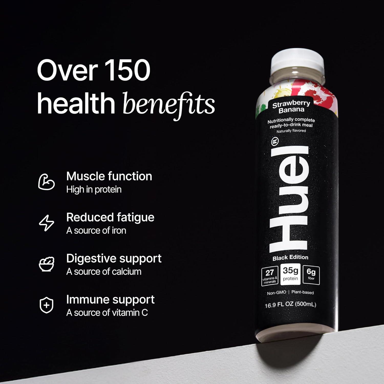 Huel Ready-to-Drink | Salted Caramel Meal Replacement Drink | High Protein Drink | Nutritionally Complete, Low Sugar, High Fiber, Plant Based, Vegan, Healthy | 22g Protein Per Bottle, 16.9 Fl Oz (12 Pack)(Black Edition Strawberry Banana)